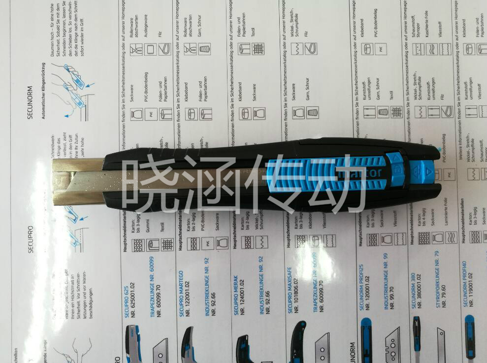 上海福名智實業(yè)有限公司,專業(yè)銷售德國原裝進口LUTZ刀片及MARTOR安全刀具,LUTZ GmbH &Co.KG和MARTOR KG是近百年的德國專業(yè)研發(fā)生產(chǎn)刀具企業(yè). 廣泛應用于印刷、塑料、皮革、林業(yè)、橡膠、塑料、食品、鋁箔、煙草、卷煙、包裝材料、薄膜、電線、化纖、玻纖、紡織、木工、制袋機、造紙、鋁箔、冶金等方面,并在國際上享有一定的知名度,具有品種規(guī)格齊全、切削效果明顯、安全防護性高、更換頻率低、使用壽命延長等優(yōu)越的特點!